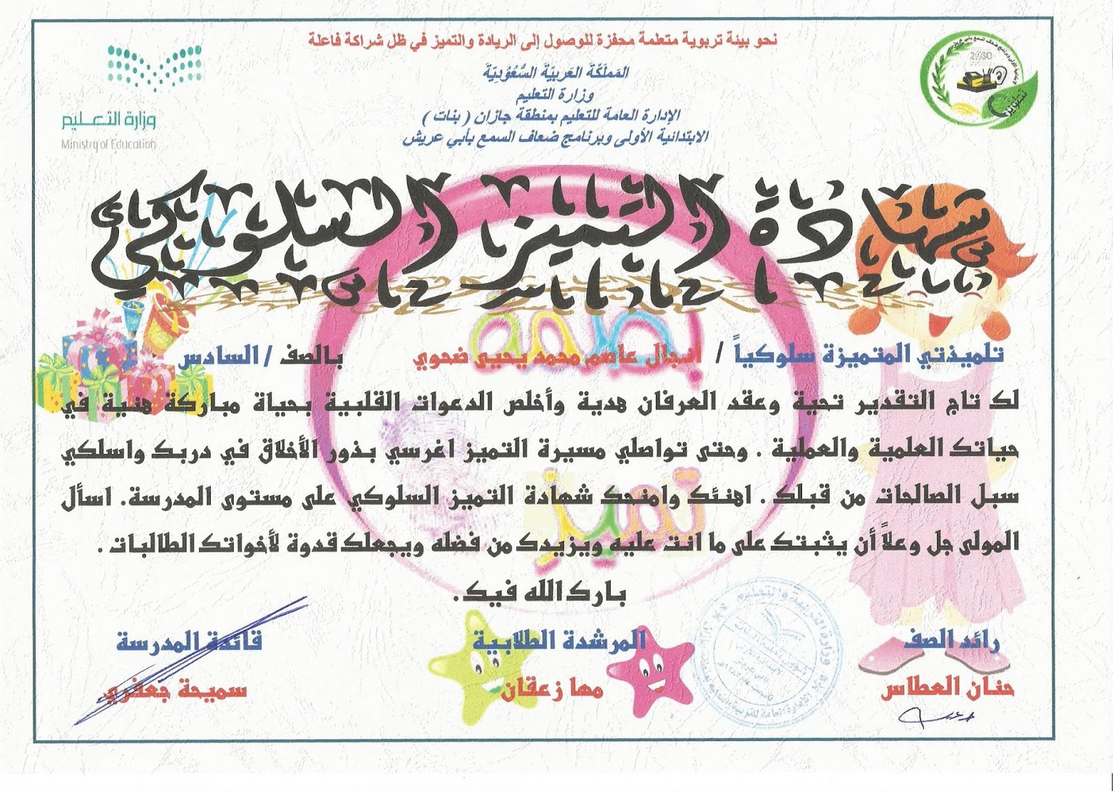 شهادات مع كلمات شكر وتقديروتشجيع للطالبات عالم حواء